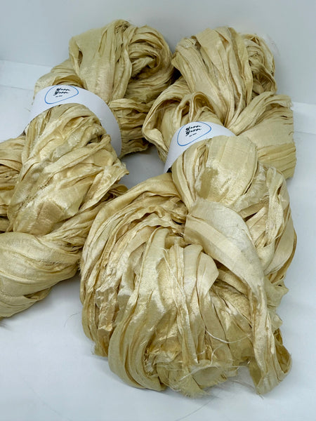 Sari Silk Ribbon Yarn – Blonde. Fibre art yarn.
