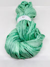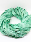 Sari silk ribbon in a delicate sea green. Very soft strips of silk. Each skein unique as these ribbon yarns are made from waste silk fabrics.