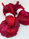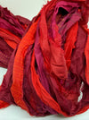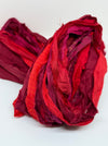 Vibrant variegated red shades in this sari silk ribbon. An eco-friendly and sustainable option for your creative projects. Made from upcycled remnants of sari silk saris, this yarn is not just aesthetically lovely, but also serves as a testament to our commitment towards reducing environmental waste.