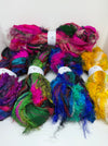 Pack of five with a generous discount for all our eyelash family! Eyelash Sari Silk Ribbon Yarn – Bright, Textured & Handmade.