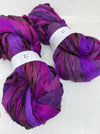 Each piece of sari silk, each skein of ribbon yarn has its own personality with an identity that is peerless. We strive to provide the best quality sari silk ribbon from the best quality of sari silk fabric available to us with a magical colour spectrum for all your creative endeavours. Whether you are a knitter, whether you crochet, weave, produce textile art and make jewellery this yarn will inspire you. It is also a great chunky yarn for rug hooking and woven wall art!