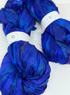 Beautiful hand cut strips of sari silk fabric made into a recycled ribbon yarn. Handmade from waste silk destined for landfill. The depth of colour in each of these skeins are stunning.