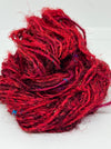 Sari silk yarn, Ruby Red. Sustainable waste silk.