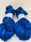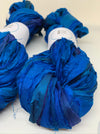 Beautiful hand cut strips of sari silk fabric made into a recycled ribbon yarn. Handmade from waste silk destined for landfill. The depth of colour in each of these skeins are stunning.